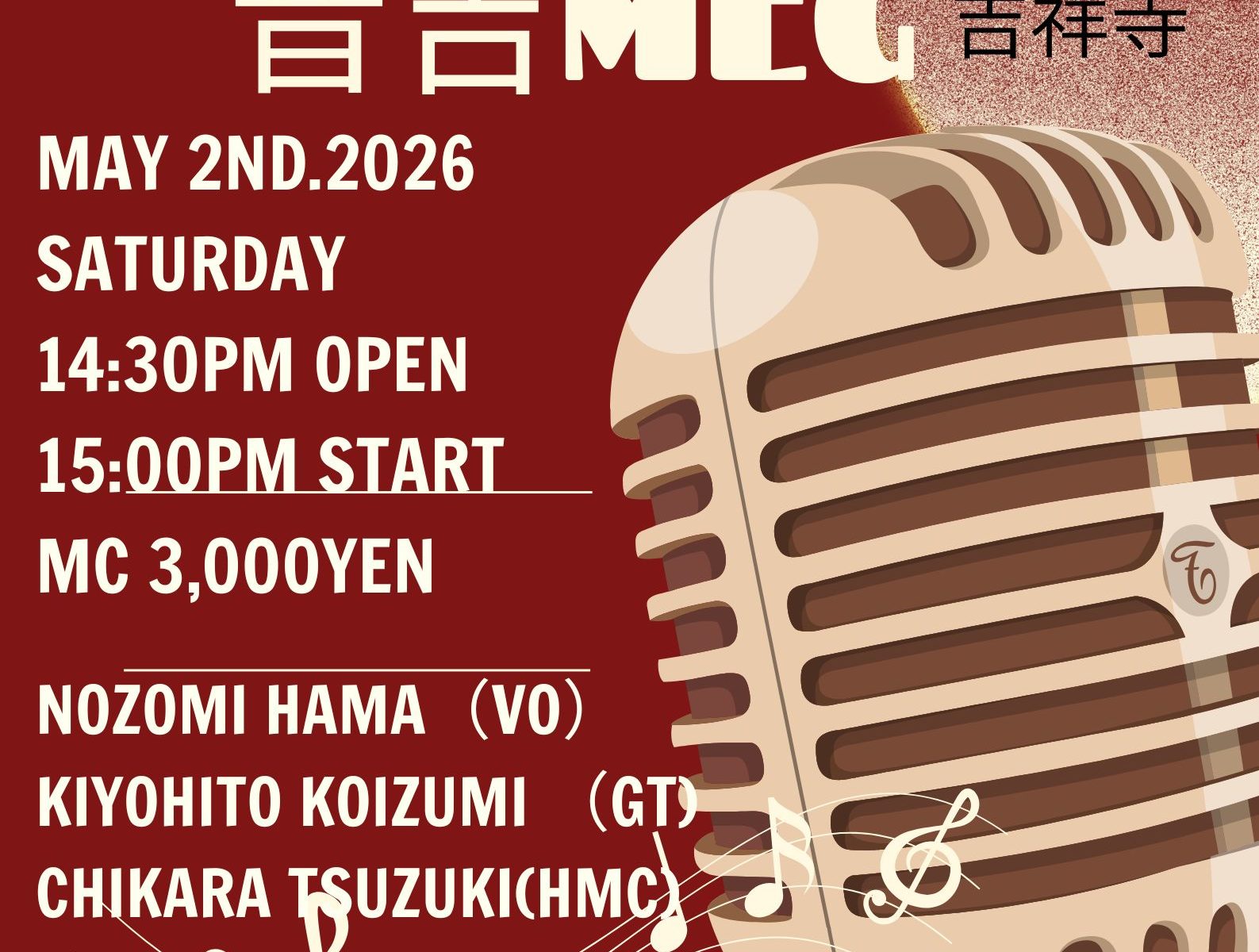 2026年5月2日㈯ 14:30OPEN 15:00スタート